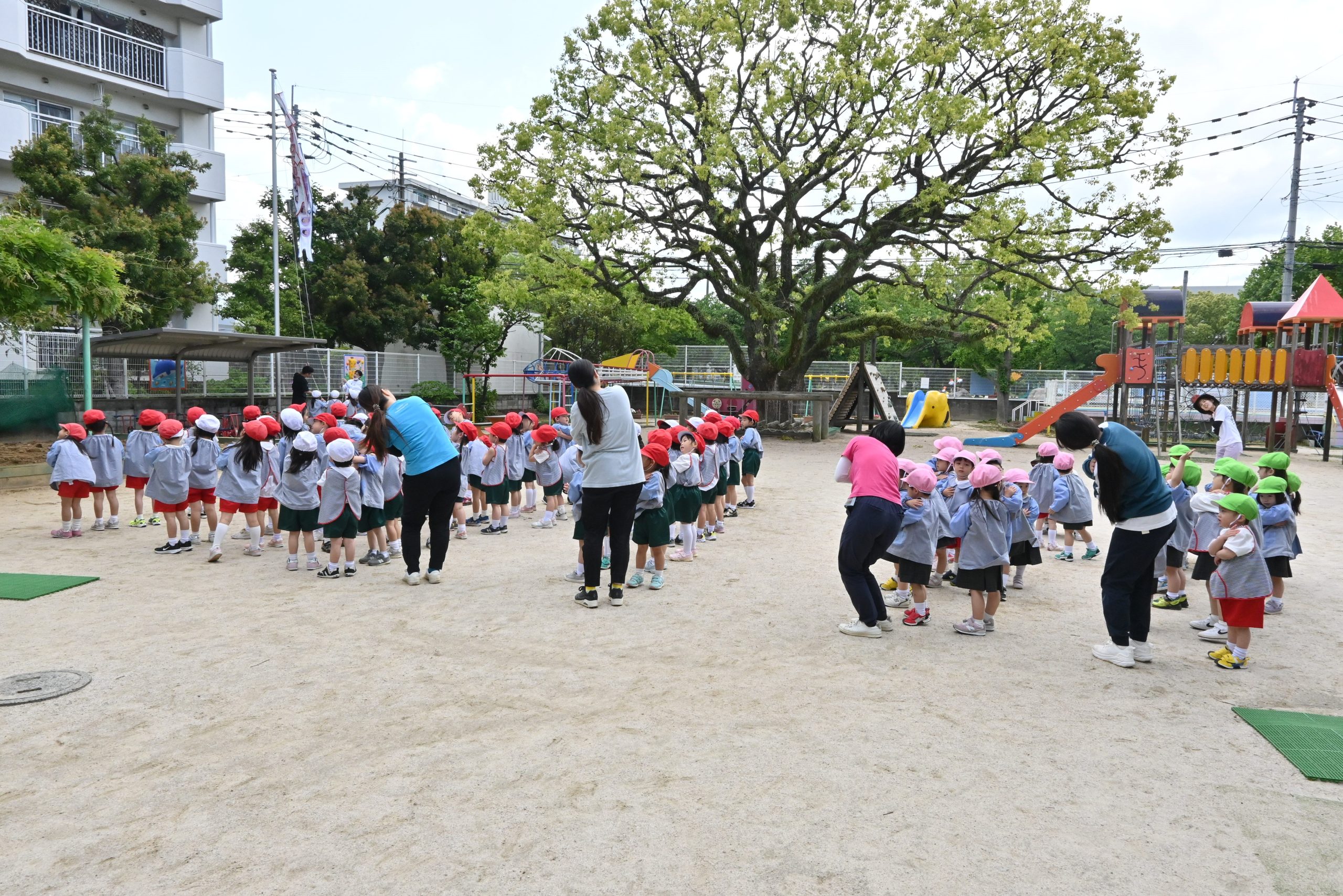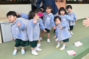 お外で元気良くご挨拶をし、こいのぼりの歌をうたい踊りました!