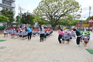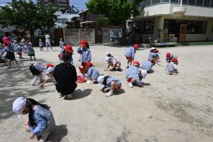 朝礼後は園庭の石を拾いました!これから裸足保育が始まるので、痛くないよう拾います!