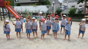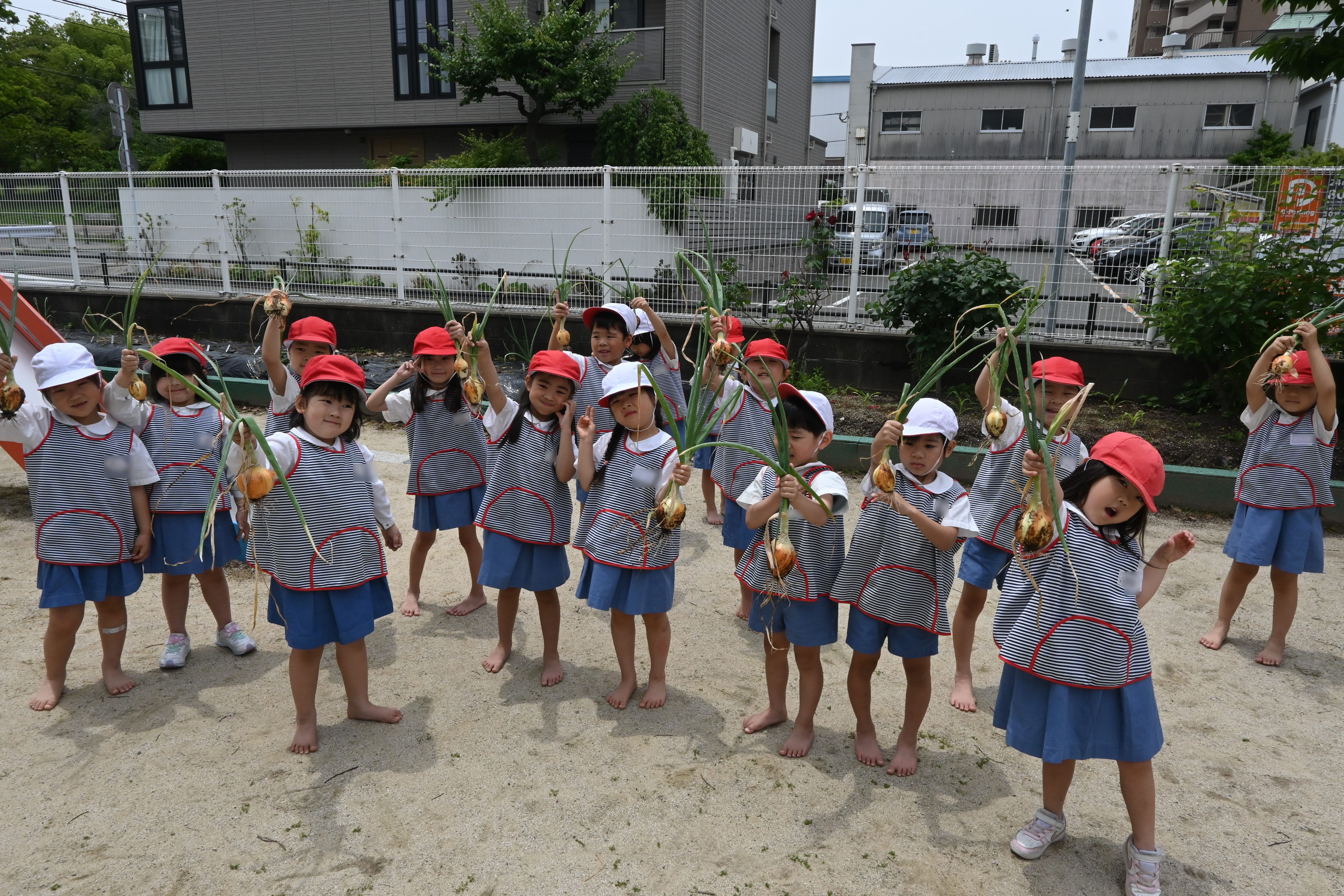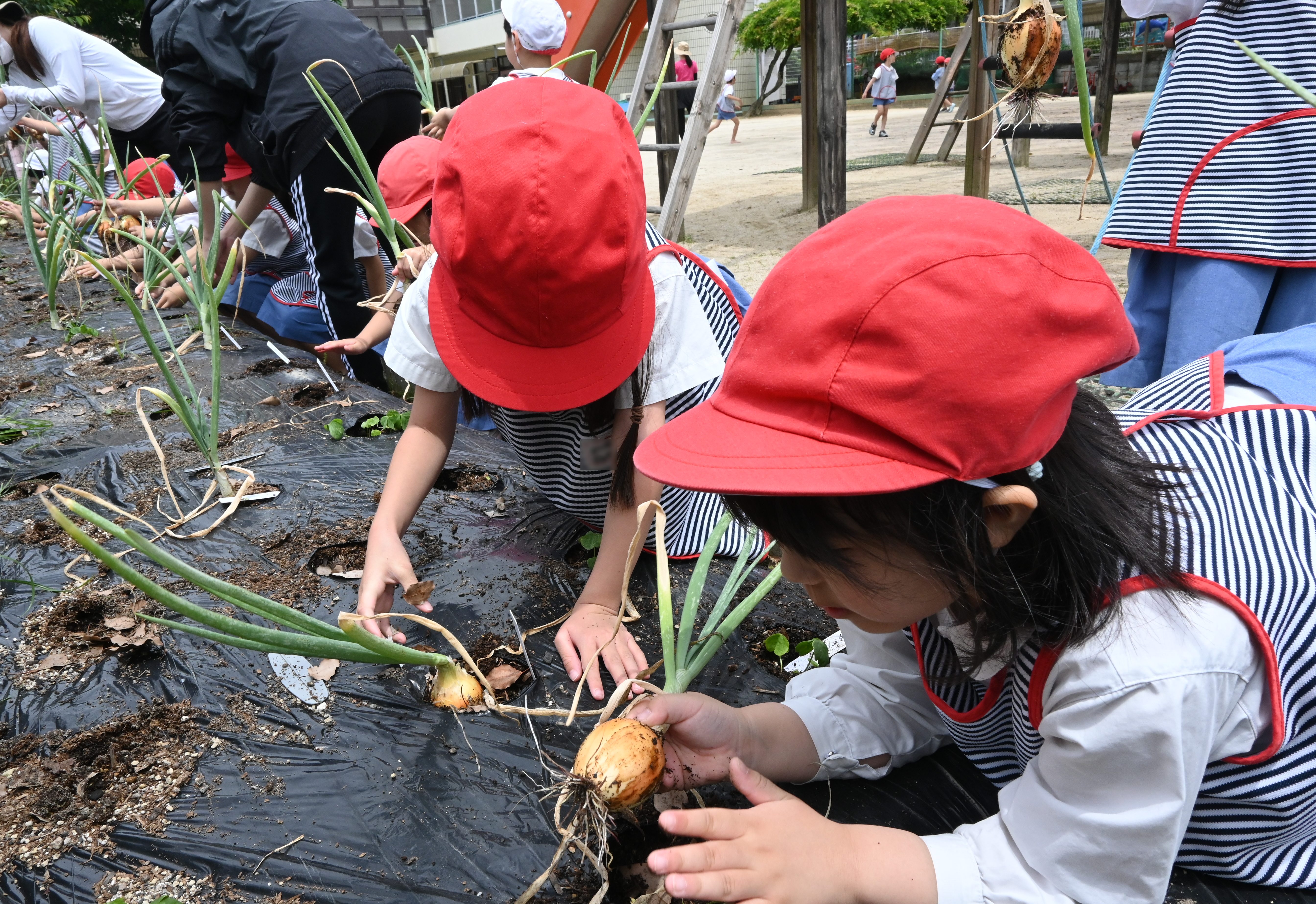 昨年、年中組の時に植えた玉ねぎが、ついに収穫の時期を迎えました✨大事に育てた玉ねぎを力いっぱい抜きました!