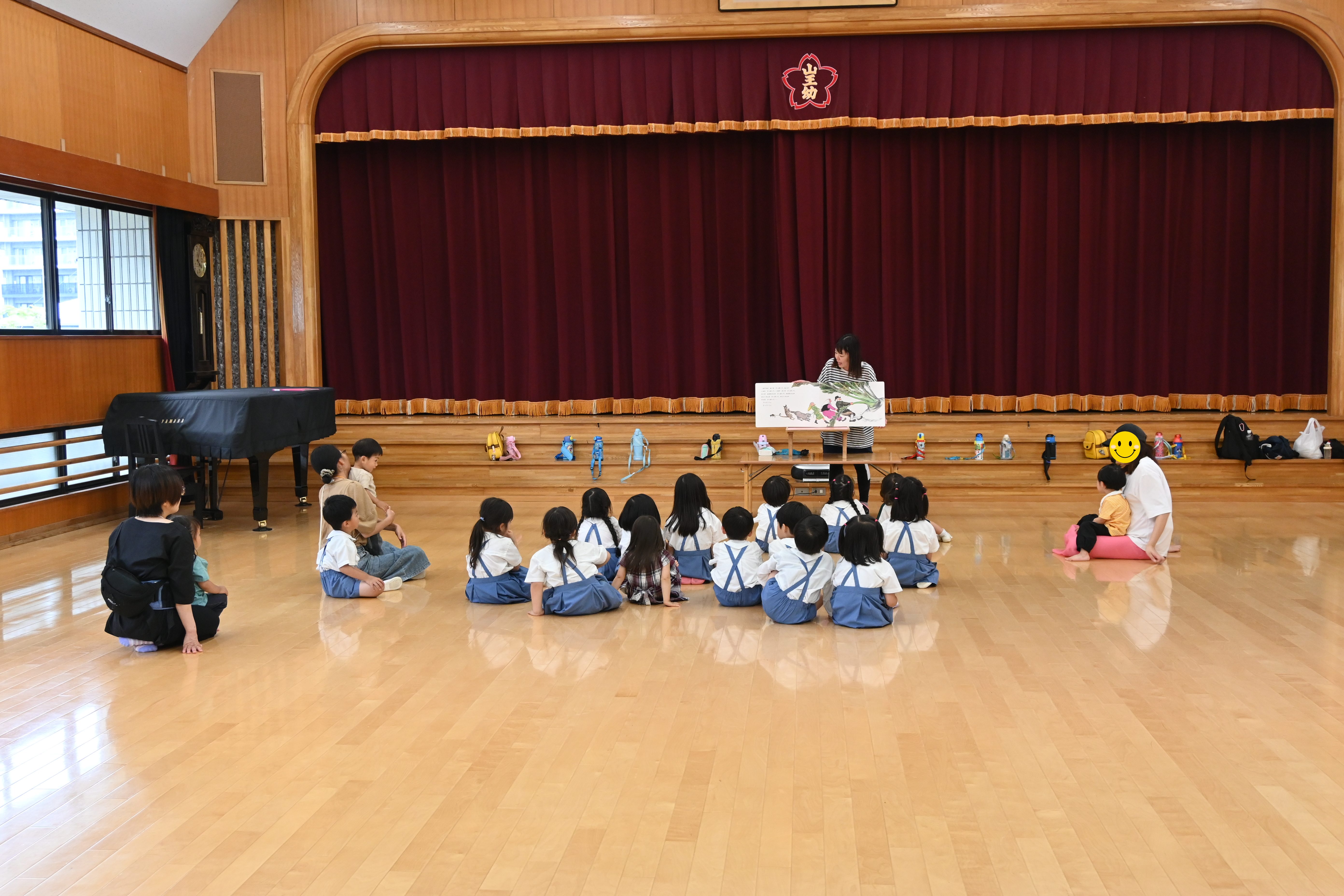 ホールでは自由遊びやリズムあそび、大型絵本の読み聞かせなどの活動が行われました📖