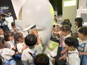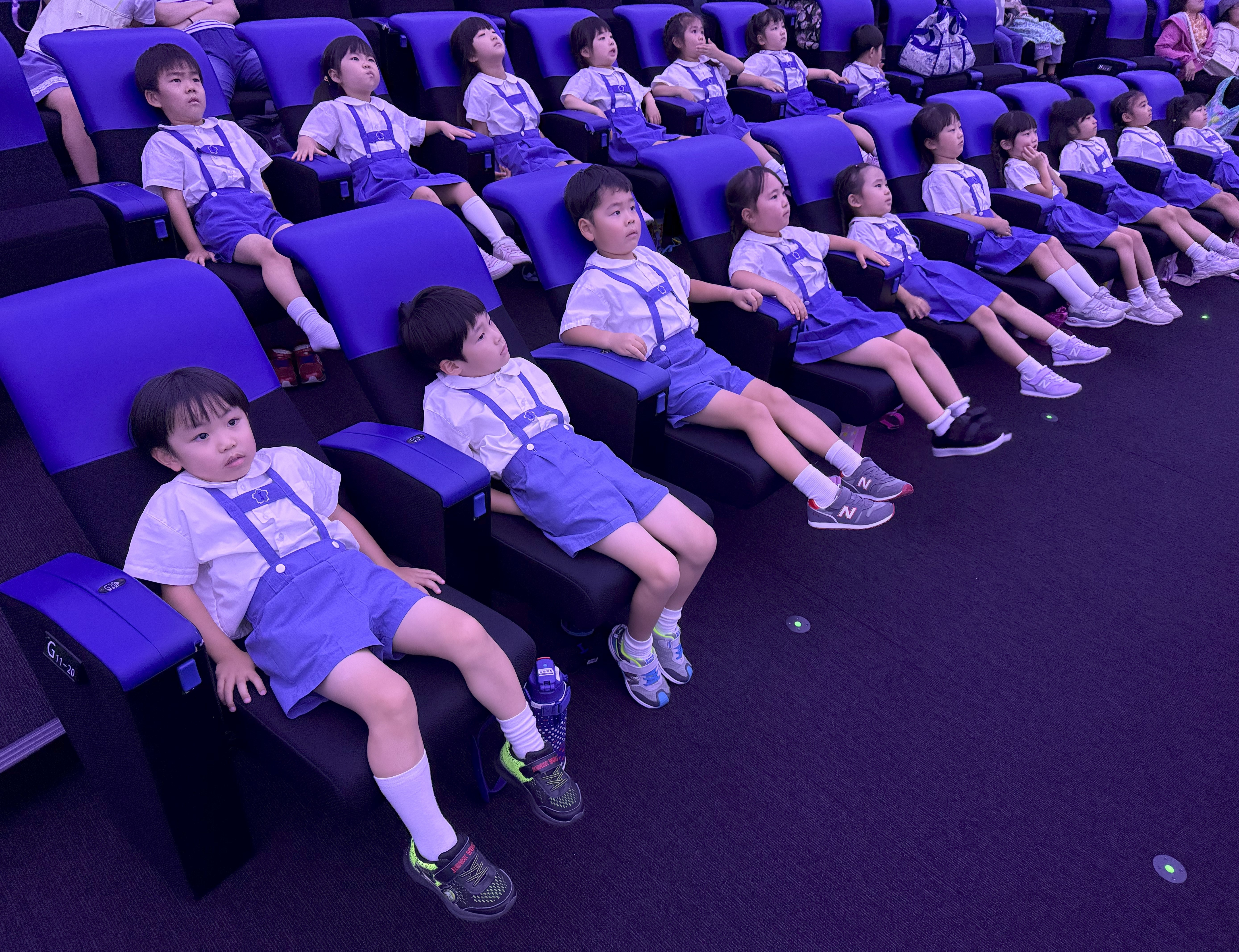 年長組が楽しみにしていた福岡市科学館に行きました🌠朝からワクワクが止まらなかったですね! まずは館内を見学し、実際に体験できる展示に触れながら「すごい!」「どうしてこうなるの?」と目を輝かせて展示を楽しむ姿が印象的でした✨そして、プラネタリウム!照明が落ちて星空が広がると、思わず「きれい!」と声をあげながら、子どもたちはじっと見つめていました🌠上映のシアターも面白かったですね!(↑上映前です)科学や星に興味を持つきっかけとなった体験。子どもたちの「知りたい!」という気持ちを、これからも大切に育んでいきたいと思います!
