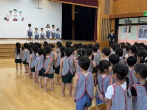 お誕生のお友だちはステージでお名前と何歳になったかを上手に発表しました✨