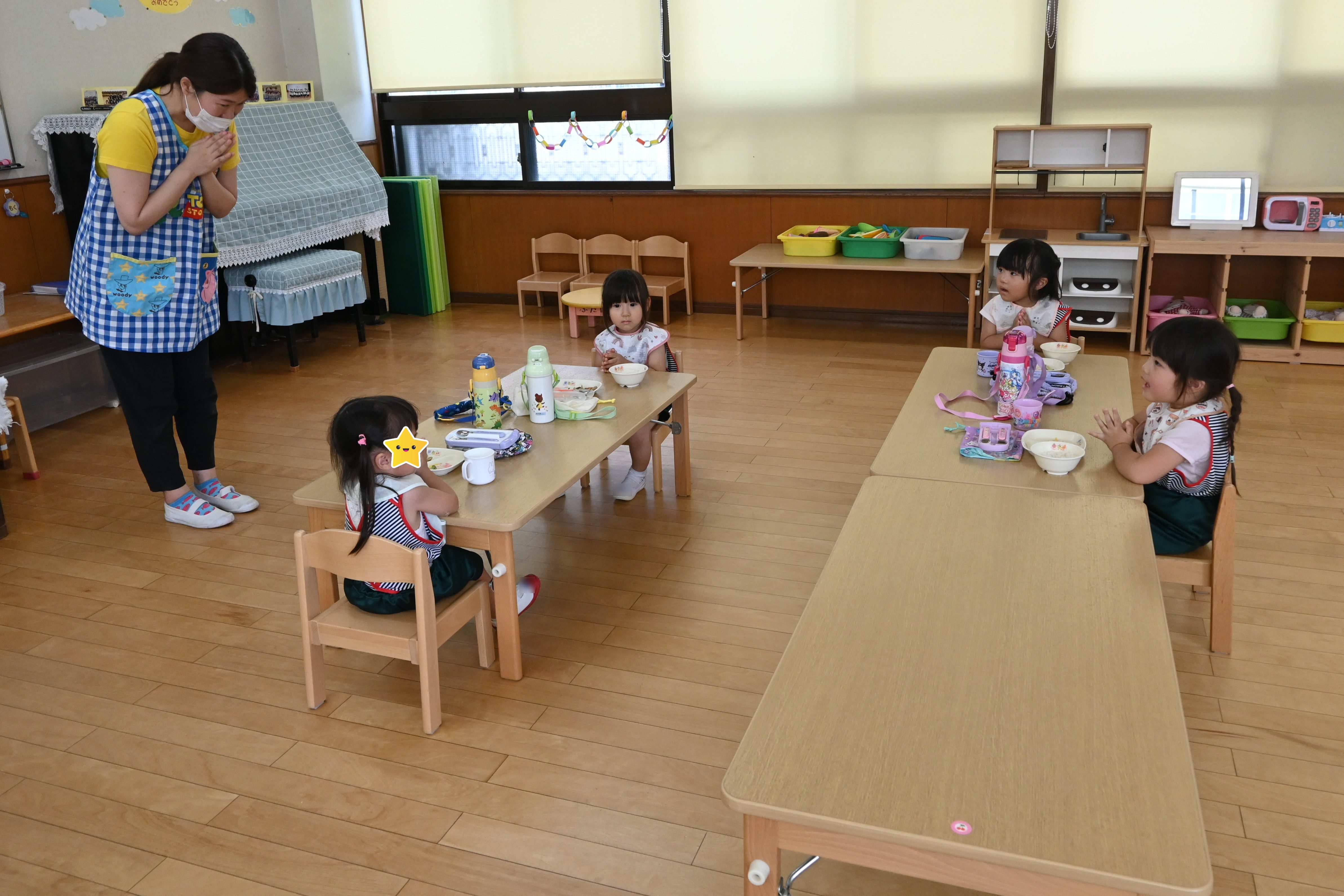 今日は幼稚園で初めての配膳給食の日でした!