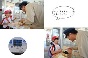 帰りの駅では、園長先生が車掌さんに変身し、