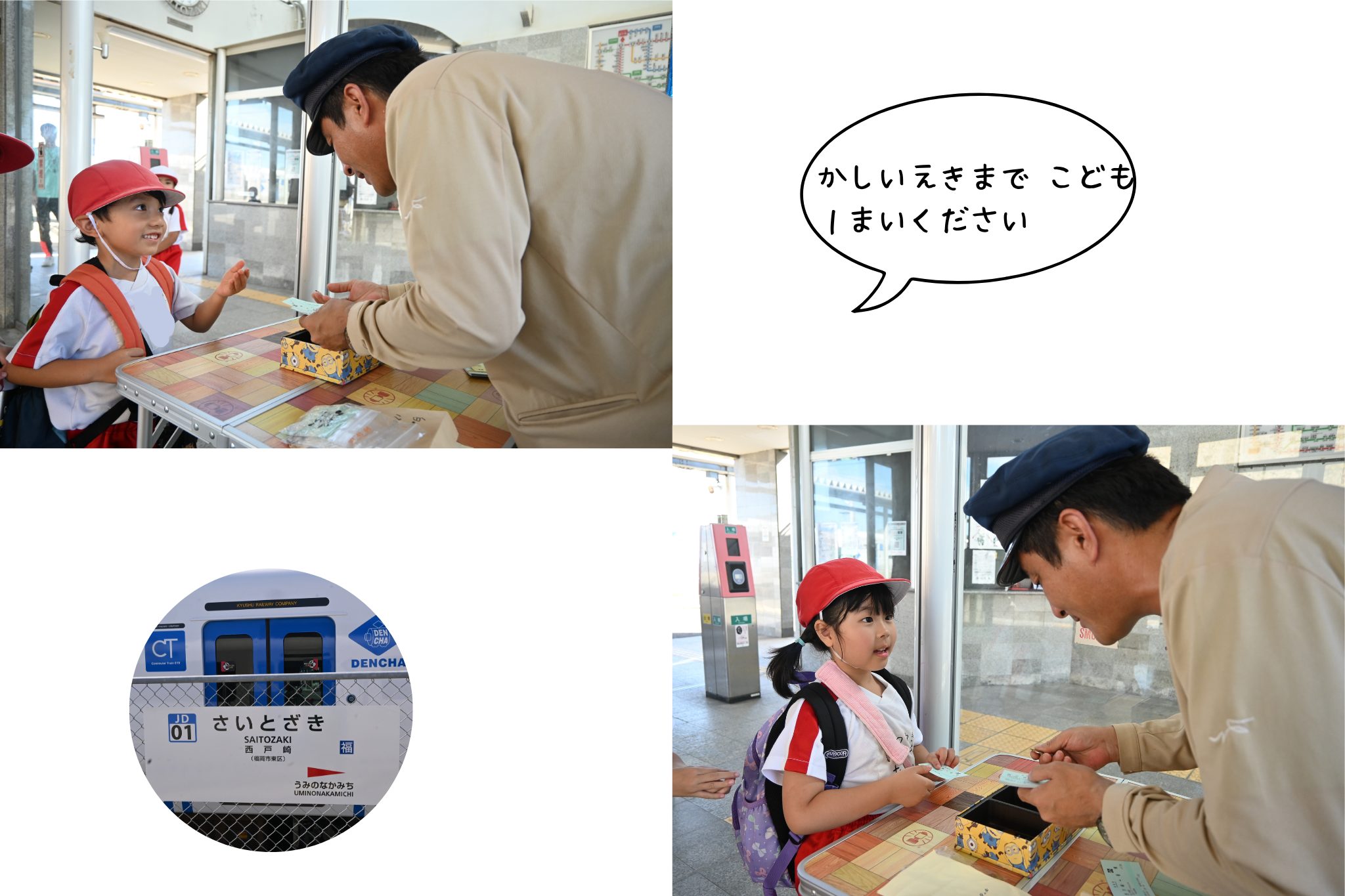 子ども達は「香椎駅まで子ども1枚ください」と上手に言いながら、自分で切符を買う体験をしました🎫