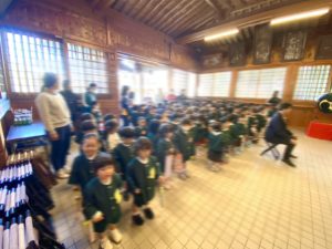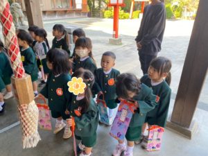 近くの日吉神社へ七五三のお参りに行きました⛩自分で作った千歳飴の袋を大事に持って、元気に「行ってきます👋」と出発!神社では宮司さんに、子どもたちの健やかな成長をお祈りしていただきました! 幼稚園のみんながこれからも元気に、健康に過ごせますように✨帰りには千歳飴をいただき、手作りの千歳袋に入れて嬉しそうに持ち帰りました!