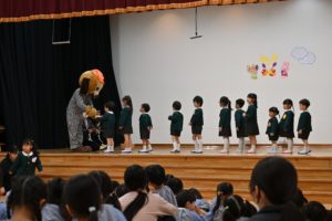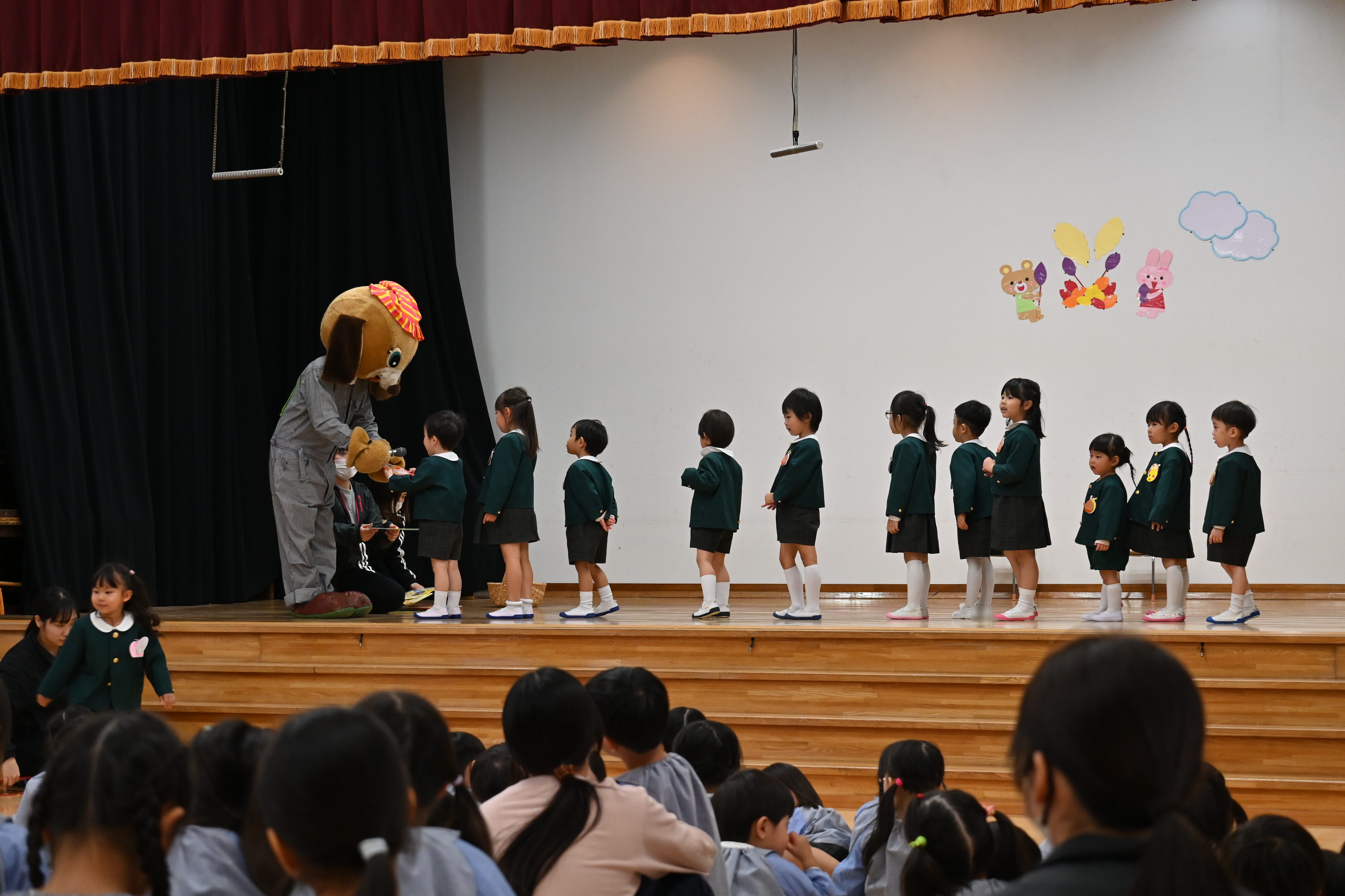 今月もさんきちくんが来てくれて、お友だちのたかやくんと幼稚園生活の寸劇をしました!みなさんも先生のお話をしっかり聞いて楽しく過ごしましょうね☺先生たちの出し物パネルシアタ―も楽しかったですね!11月生まれのお友だち、お誕生おめでとうございます🎂