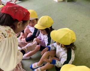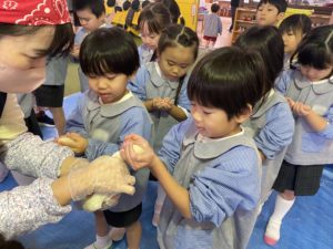 年少々組は見学をし、お餅に触り感触を楽しみました♪