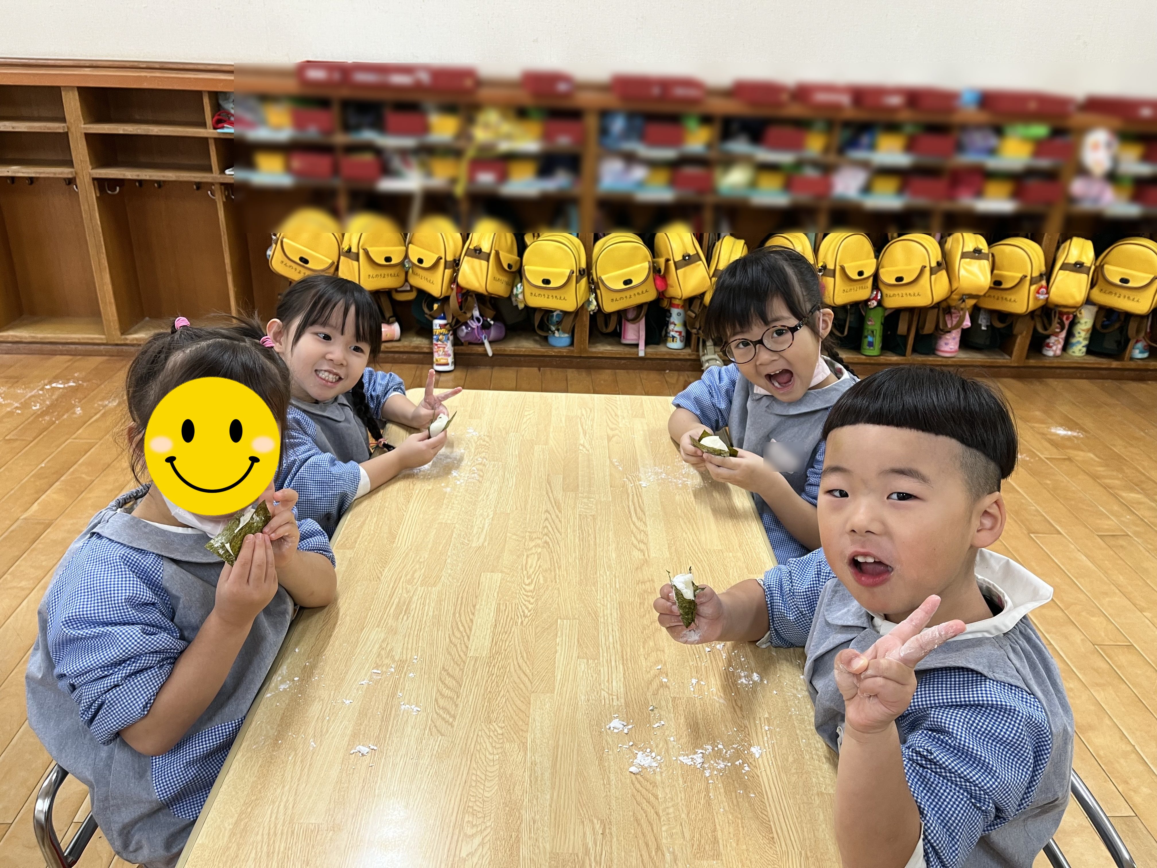 年長組・年中組は自分のお餅を自分で切り、手のひらで丸めてお部屋でいただきました☺