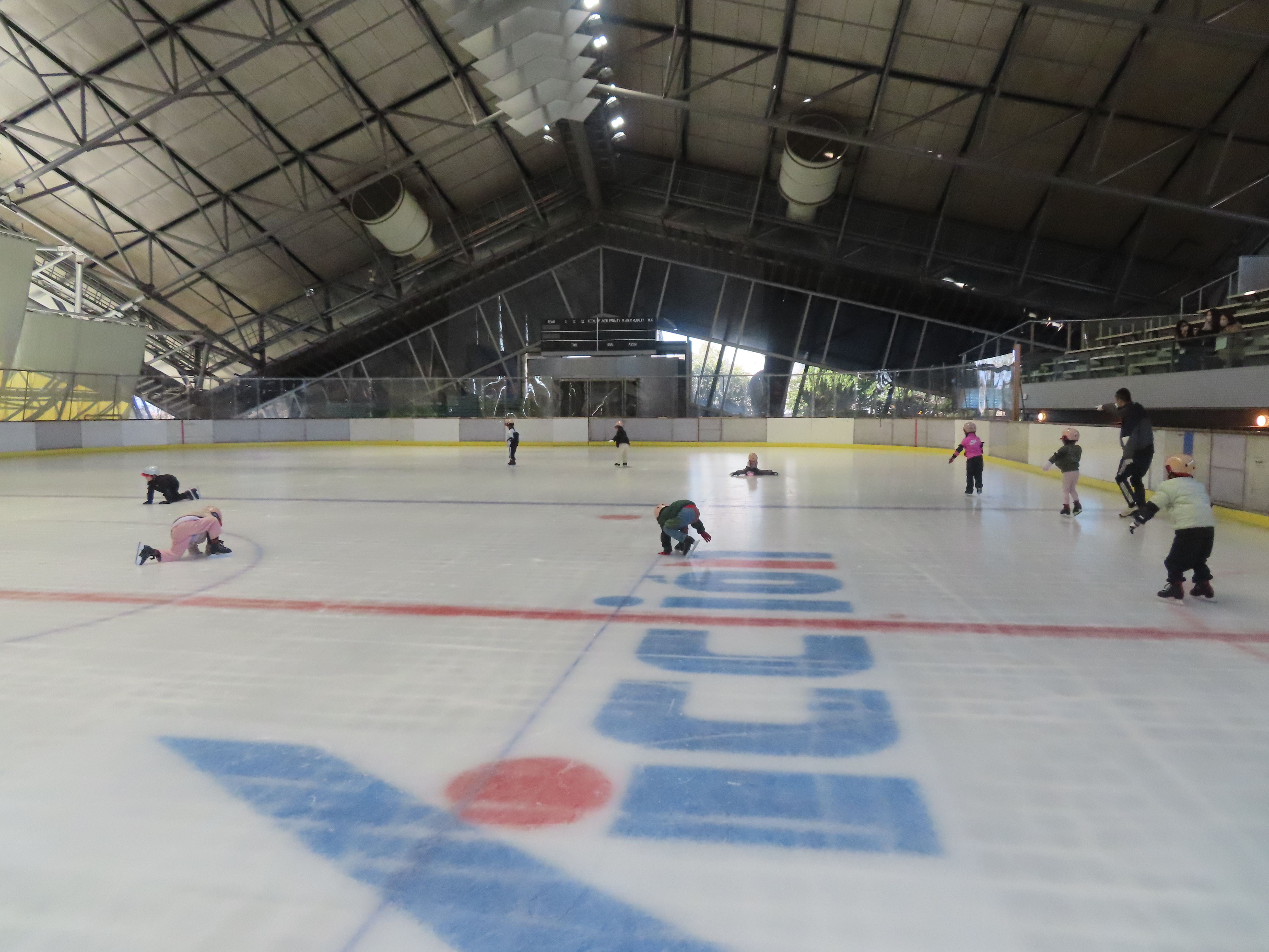 年長組がアイススケート体験を行いました⛸まずは氷に慣れるところからスタート!転び方を教わりながら、少しずつ立つ練習をしました!