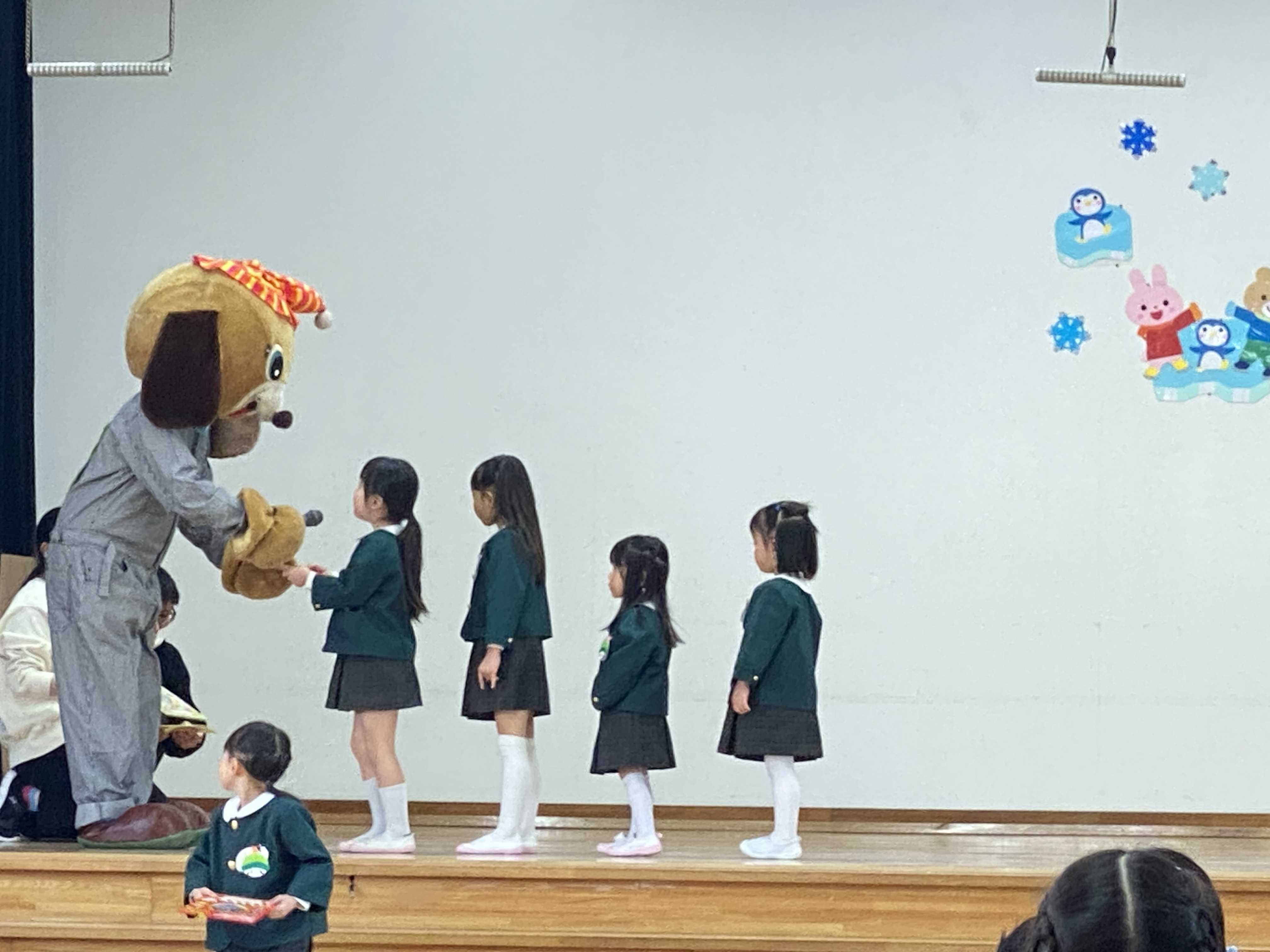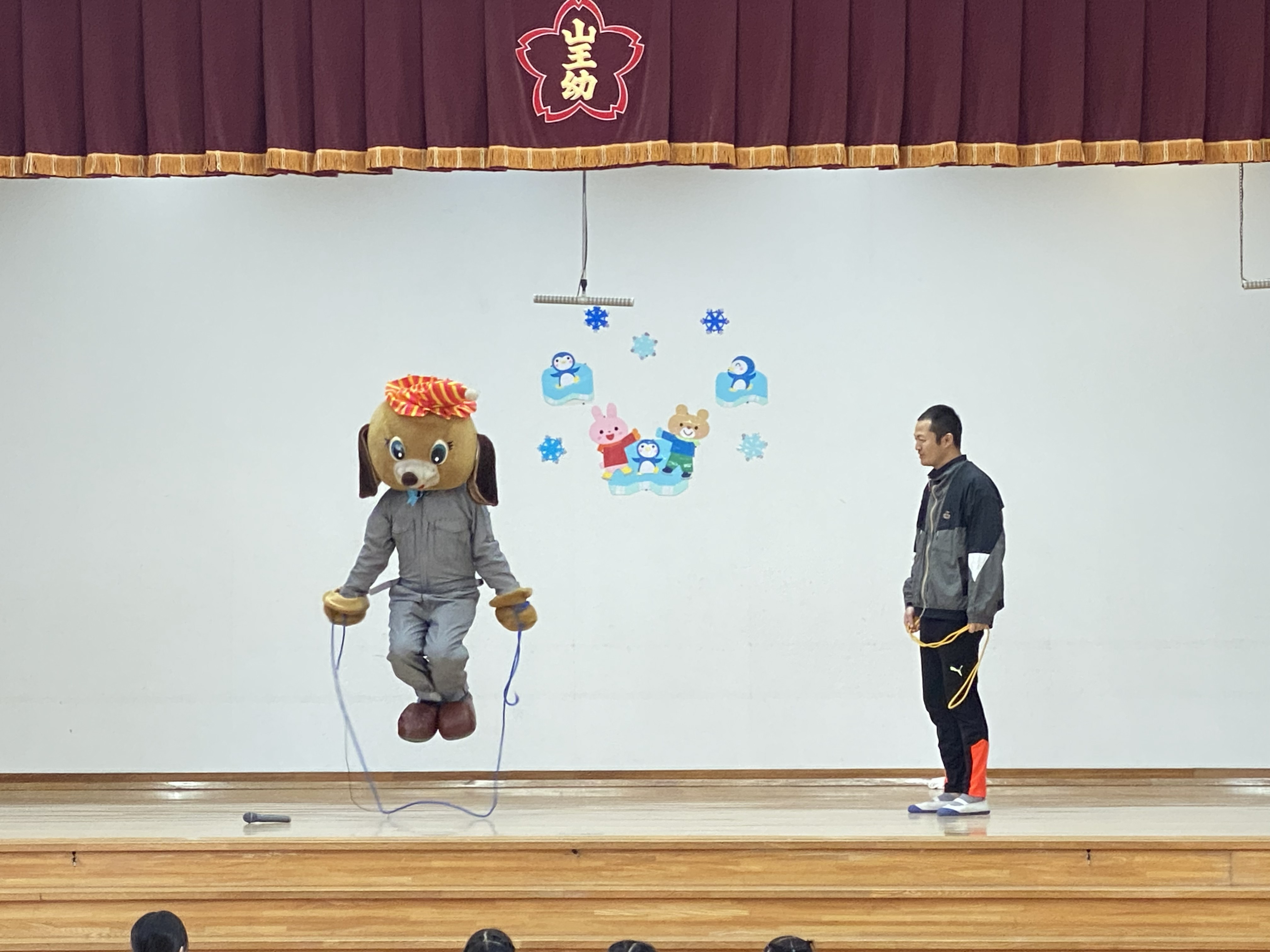 2月生まれのお誕生会がありました! みんなで歌を歌い、お祝いをしました♪そして今月もさんきちくんが遊びに来てくれて風邪予防についてのお話をしてくれました!手洗いやうがいの大切さを、改めて教えてくれましたね🐶↑さんきちくん毎日練習をして縄跳び上手になっていました👏パネルシアター「へんてこおしくらまんじゅう」のお話も楽しかったですね✨2月生まれのお友だちお誕生おめでとうございます!