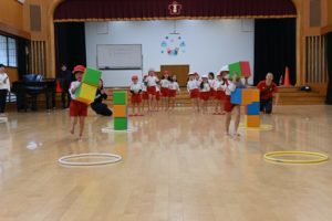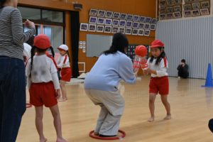 年長組が、運動遊びの集大成として「ミニミニ運動会」をおこないました!チームのお友だちと力を合わせながら、さまざまな競技に楽しく取り組みました😊子ども達は先生のお話をよく聞いてゲームに臨んでいました!