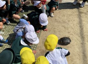子どもたちが「おはよう!」と優しく声をかけると、カメもゆっくりと目を覚ましてくれました✨