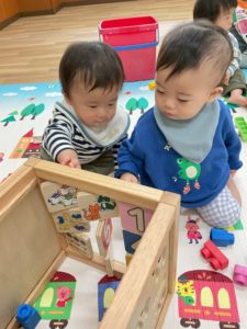 1歳クラス、いちご組のお友だちが登園して2日目です!
